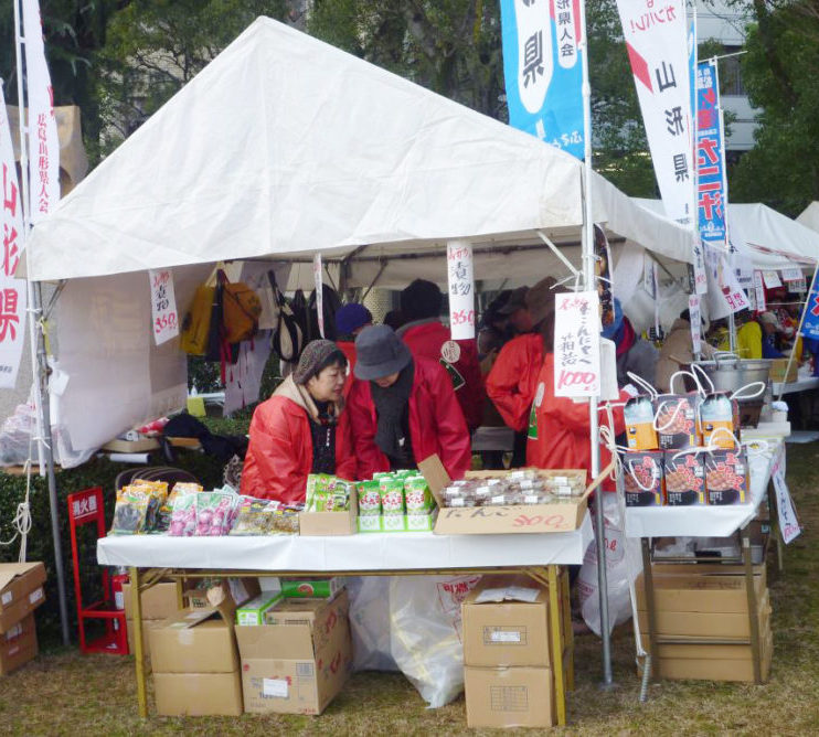 販売品目は例年と同様ですが、お酒は途中で出羽桜のカップ酒がなくなったので、熱燗は東光、初孫、男山、銀嶺月山の4銘柄、冷酒で出羽桜吟醸酒を30個ほど用意しました。昨年よりしなべきゅうり、ぜんご漬を80袋、でん六豆は200袋に減らしました。一方、あずき甘納豆は400袋に増量しました。