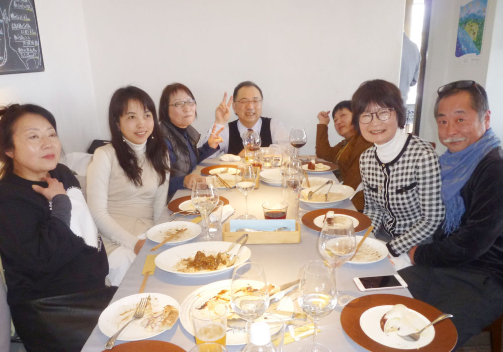 総会終了後はお待ちかねの懇親会です。遅れていた渡辺さんも到着、鶴岡からボッカアルケッチャーノの齋藤取締役が来訪され 、乾杯でスタート。ビールの後、ワインで極上のイタリア料理を楽しみました。