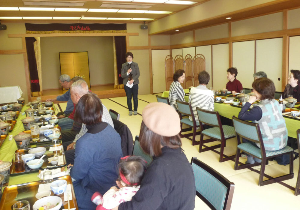山内会長のごあいさつの後、来賓の黒田所長から山形の雪の状況、新ブランド米“雪若丸”、米沢~福島間の高速道路開通などのご紹介がありました。阿部事務局長が今年度の行事報告、平成31年度事業計画を説明、会計の佐藤成さんより今年度の会計決算報告を行い、満場一致で承認されました。