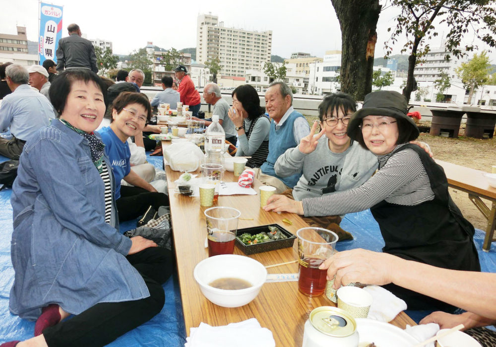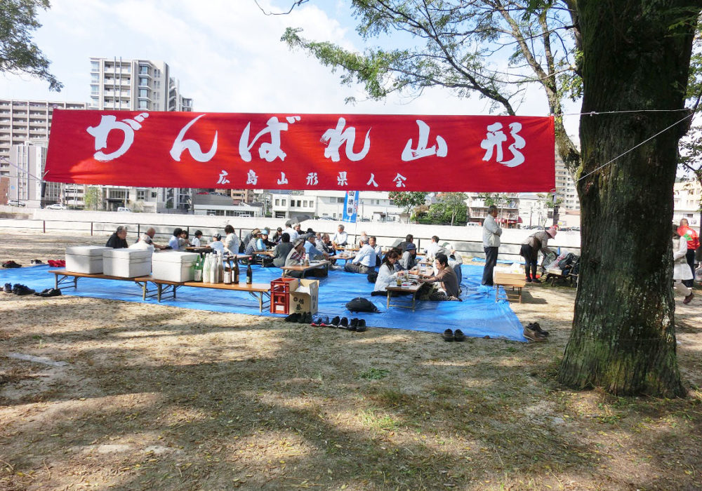 ほどほどにアルコールも入ったところで自己紹介に移りました。日松さんには今回駅伝のお手伝いと、総会にも参加いただきました。子育てが終わり、これからは参加できるということで、うれしいですね‼ 木村さんは3月末で山形に帰るということでした。国井夫妻から西日本豪雨災害時のお見舞いに感謝の言葉がありました。午後2時に屋外に出て、全員で山形県民歌を合唱、記念写真を撮って盛会のうちに終了しました。