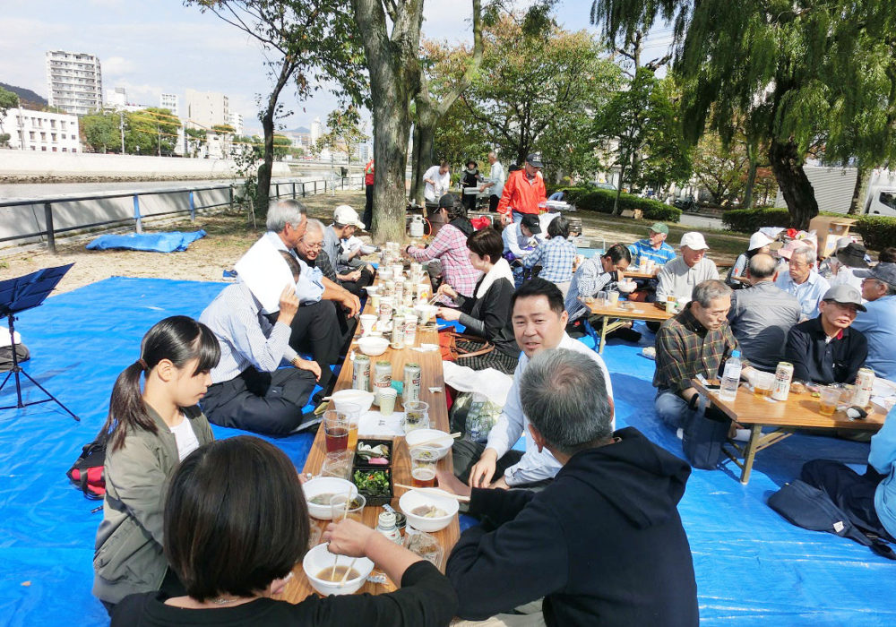午前11時にスタート。海辺に面し、宮島が見える明るい雰囲気での総会となりました。